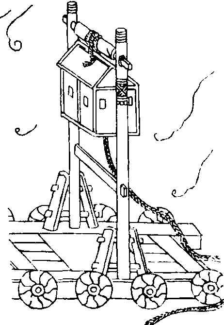 古代用以瞭望之兵车。巢车以八轮车上树高竿,竿上安辘轳,以绳挽板屋上竿首,以窥城中之敌。板屋方四尺,高五尺,有十二孔,四面别布,可进退,环城而行。车于营中远视,如鸟之巢,故谓巢车。北魏皇始二年(397),拓跋珪围后燕慕容详于中山,曾使人登巢车临城谕降。
